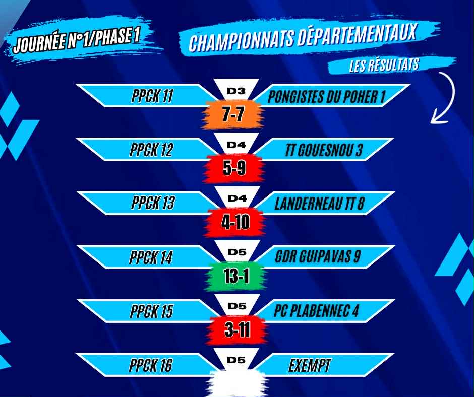 6️⃣ victoires ✅, 7️⃣ défaites ❎, 2️⃣ matchs nuls ↕️ et 1️⃣ équipe exempte.