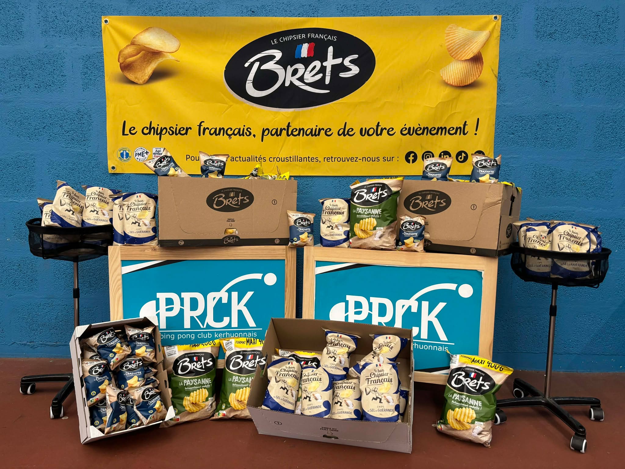 Dans le cadre de nos tournois annuels 🏓, la société Brets, le chipsier breton 🥔, nous épaule via la fourniture de paquets de chips… un coup de pouce notable et très apprécié des gourmands.